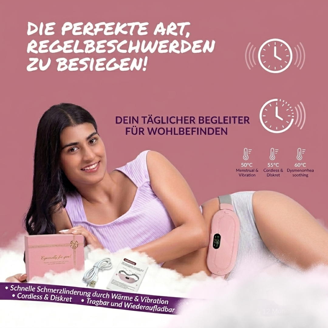 Perioden-Massagegürtel ist das tragbare Wärme- & Massagepad, das gezielte Wärme genau dorthin bringt, wo du sie brauchst – spürbar in nur 60 Sekunden.